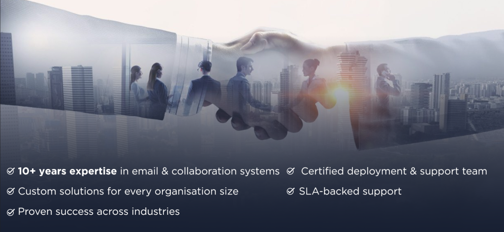 on-prem, cloud, or hybrid email systems tailored to your organisation.